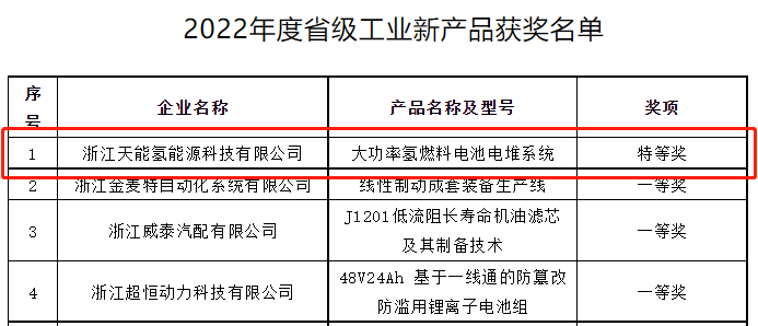 近日,浙江省长兴县经济和信息化局公示了2022年度省级工业新产品获奖名单,由浙江jcjc5500公海氢能源科技有限公司研发生产的大功率氢燃料电池电堆系统获得全县唯一省级特等奖。